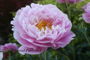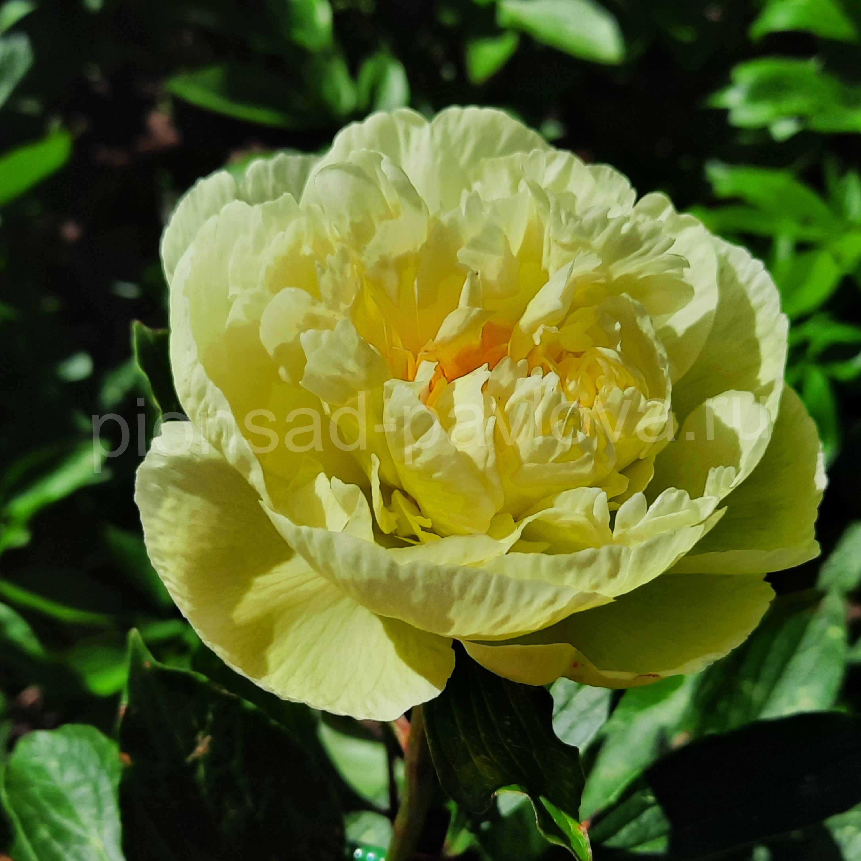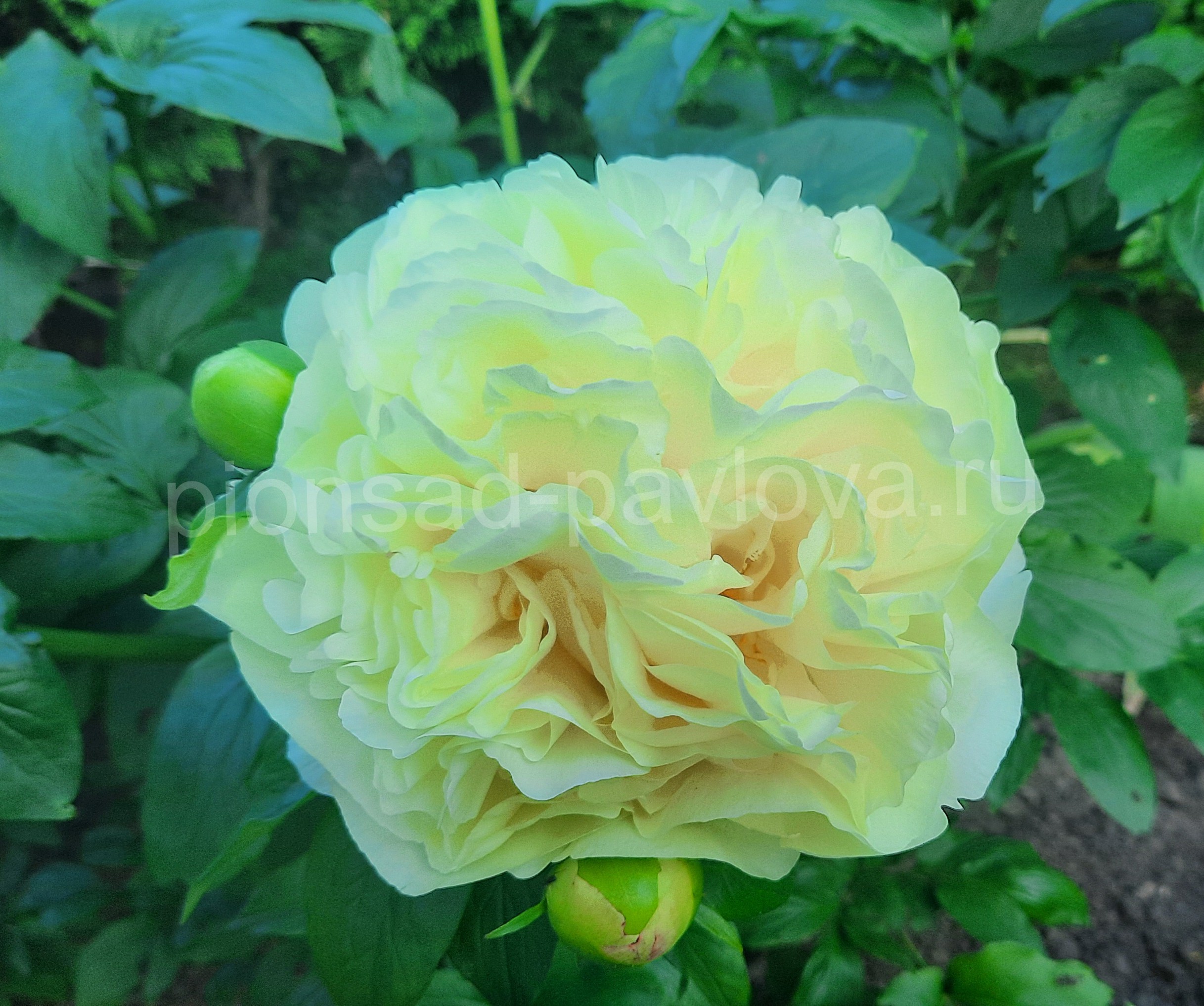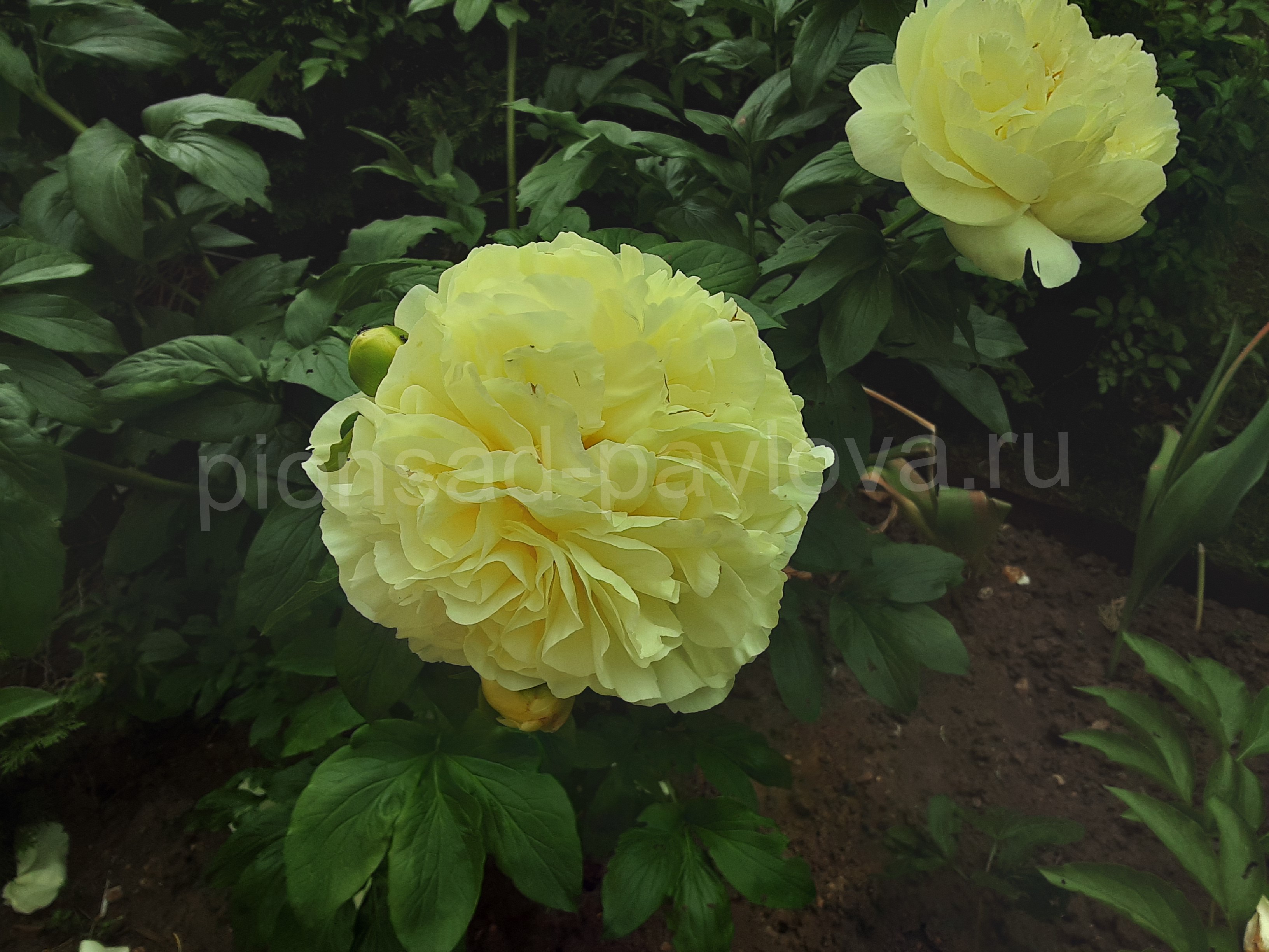 ЛЕМОН ЧИФФОН – Lemon Chiffon (Рит, 1981, США). Гибрид Махровый розовидный. Крупный , жёлтый цветок с лимонным оттенком. Есть тычинки. Цветы на кусте махровые и полумахровые, количество махровых цветов увеличивается с возрастом. Куст с прочными стеблями и темно-зеленой листвой. Высота куста=80см, Диаметр цветка=18см Аромат слабый. Ранний срок цветения. Получен из питомника Adelman Peony Gardens
